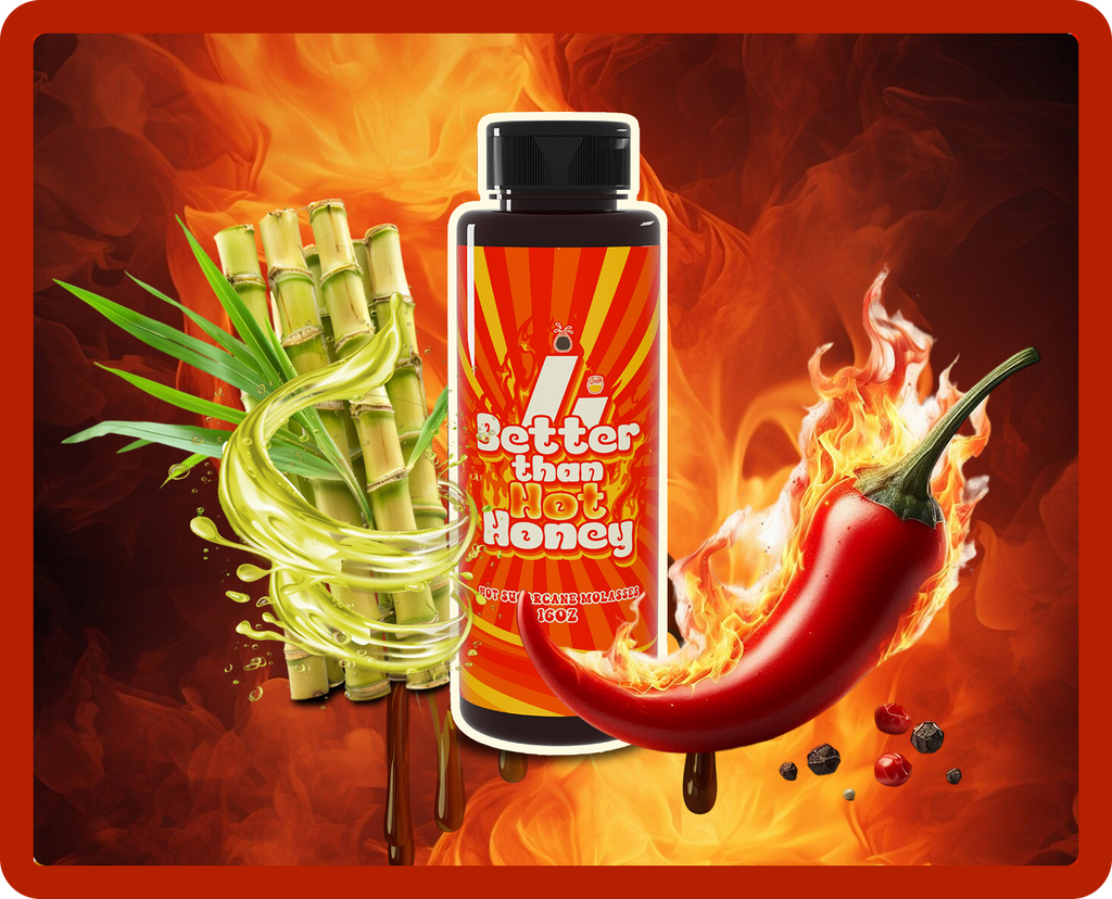 Our Hot Molasses delivers a bold twist on tradition—rich, natural sweetness blended with a fiery kick of spice. Perfect drizzled over pizza, barbecue, or even glazed on veggies, or swirled into sauces, it transforms everyday meals into flavor-packed experiences. Smooth yet spicy, comforting yet adventurous—this is molasses with attitude. No additives, no preservatives, just pure natural sweetness turned up with heat. For food lovers who like a little fire with their flavor.